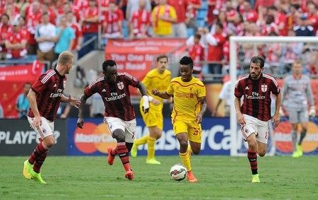 先制したのはリヴァプールだった。17分、ミランの自陣でのビルドアップにジョー・アレンがプレスをかけ、マイケル・エッシェンから