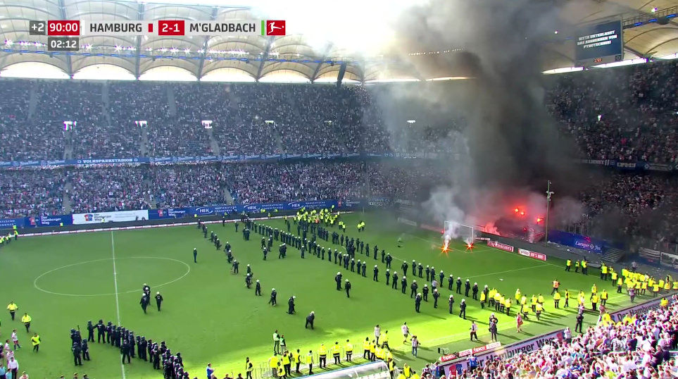 ハンブルクはピッチに騎馬隊が突入してるぞ