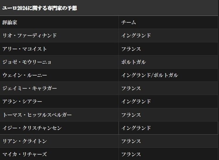 フランスとイングランドしかいないのがガチの予想って感じで好き