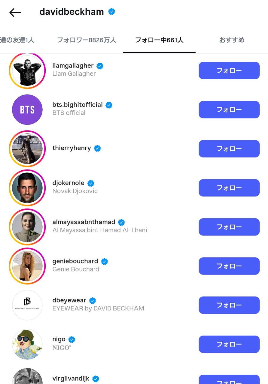 デイビット・ベッカムにフォローされてすごい