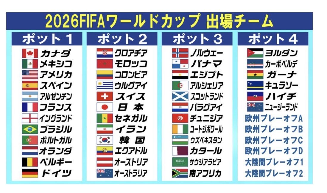 既に出場を決めている42チームの代表者に加え、来年3月の大陸間プレーオフ(PO)と欧州POで切符獲得を目指すチームの代表者も出席する見込みだという。