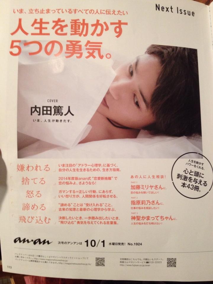 内田篤人選手 - 10月1日発売「anan」1924号(マガジンハウス)より