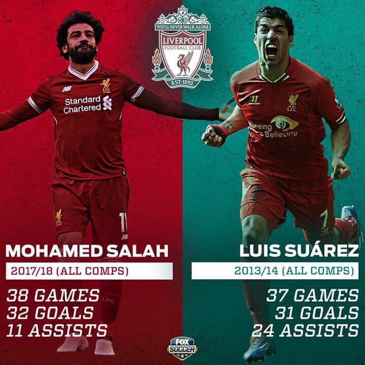 【リバプール最強FW対決】サラーってもうリバプール時代のスアレスを超えてる?