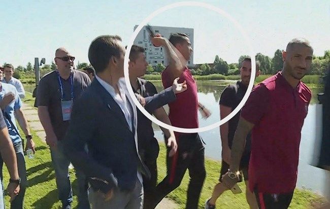 問題のシーンは、試合終了間際の後半44分。ロナウドは味方のパスをヒールでダイレクトにリターンし、ワンツーを狙った。しかし、パスをさせまいと猛チャージをかけたハンガリーのDFアティラ・フィオラが、勢い余ってロナウドの左足を蹴ってしまった。すると、ロナウドはフィオラの左足を蹴飛ばす“報復行為”に出て、両者は一触即発の睨み合いとなった。
